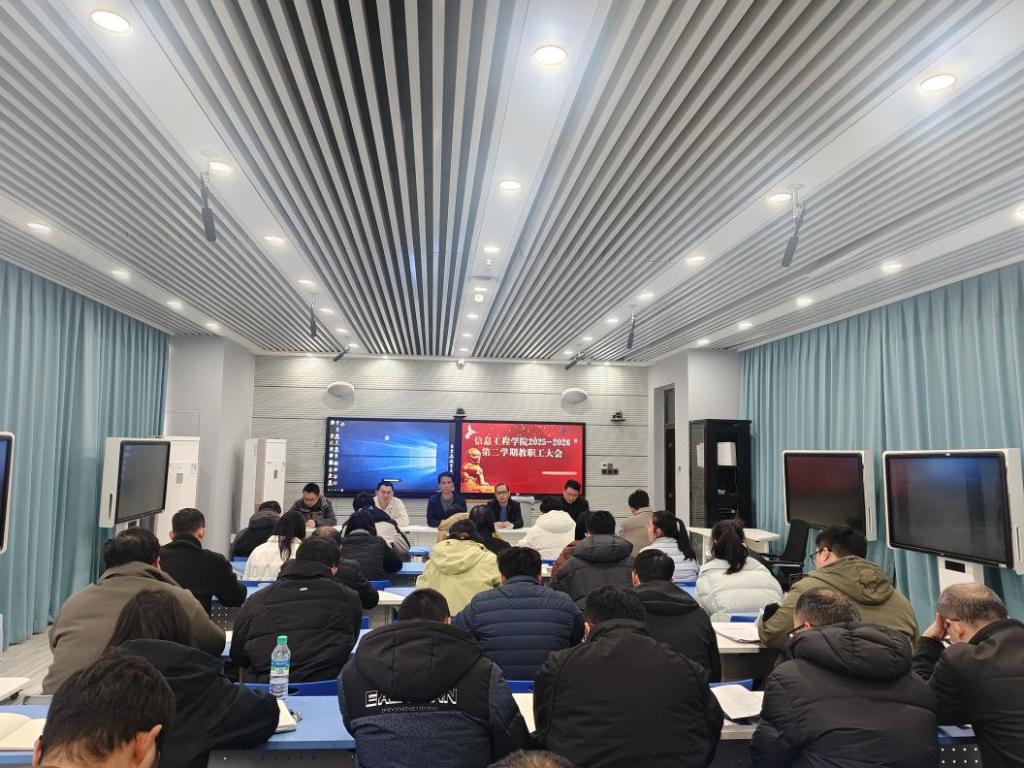此次系列活动,既是一次政策理论的深度研修,也是一场新学期工作的全面动员,更是一次思想共识的集中凝聚。下一步,信息工程学院将以此次活动为新起点,坚持以立德树人为根本任务,以教师队伍建设为核心抓手,以改革创新为发展动力,进一步统一思想、凝聚共识、真抓实干,以更坚定的信念、更务实的作风、更有力的举措,扎实推进教育教学、学生管理、实习就业、队伍建设等各项工作提质增效,不断提升办学质量与育人水平,为培养高素质技术技能人才、推动职业教育事业高质量发展贡献更大力量。
