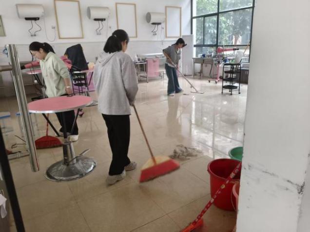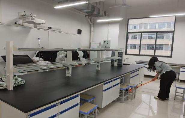活动伊始,指导老师根据清洁区域特点,将志愿者合理分组并明确各小组任务分工,确保清洁工作高效有序开展。分工完毕后,志愿者们迅速投入劳动,手持扫帚、抹布、垃圾袋等清洁工具,对教学楼教室、实验室的公共区域进行细致清扫。大家齐心协力清理地面垃圾、擦拭门窗桌椅、规整实验与学习用品,认真清除卫生死角,不放过任何一处细节。劳动过程中,志愿者们相互配合、互帮互助,充分展现了青年学子不怕苦、不怕累的奉献精神和良好的团队协作风貌。