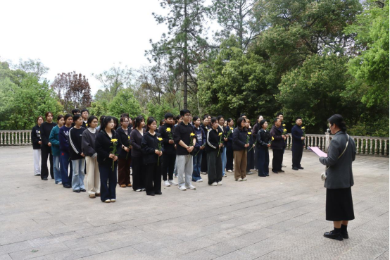 松柏肃立,哀思绵绵。在陈赞贤烈士墓前,全体师生整齐列队,奏唱国歌,默哀一分钟,依次敬献鲜花。方敏同志以“清明祭英烈,奋斗慰忠魂”为题讲授微党课。他动情地说:铭记是最好的告慰,传承是最好的纪念,奋斗是最好的担当。他勉励全体师生:一要铭记历史,从先烈身上汲取前行的方向与勇气;二要赓续血脉,把个人理想融入强国建设、民族复兴的伟大征程;三要勇担使命,以强农兴农为己任,在服务乡村振兴的火热实践中绽放青春。