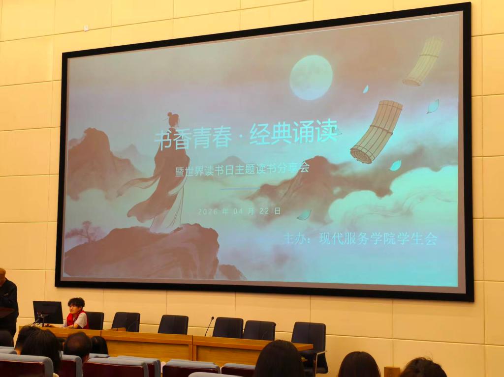 在第29个世界读书日来临之际,为深入推进书香校园建设,引导青年学生养成“爱读书、读好书、善读书”的良好习惯,近日,由学校现代服务学院学生会组织举办的“书香青春٠经典诵读暨读书分享会”在图书馆一楼报告厅正式举行。活动邀请现代服务学院王钰湄老师、钟天才老师及学生会主席朱惠微担任专业评委,近百名师生到场参与,以书为媒、以文会友,共赴一场浸润书香的文化盛宴。