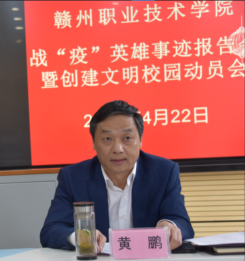 为扎实推进文明校园创建工作,努力营造安全、稳定、文明、和谐的校园环境,4月22日下午,我院召开深化文明校园创建工作动员大会。党委书记邹志华出席会议并作部署讲话,会议由院长黄鹏主持,雷竞技电竞平台官网、赣州农业学校、赣州技师学院三校领导班子及师生参加会议。