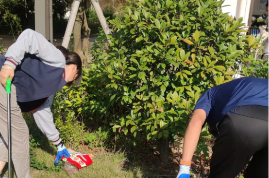 学生们利用午休时间来到责任区打扫卫生,他们手拿清洁工具,认真地清理花圃里的垃圾和杂草,充分发扬了吃苦耐劳的精神。