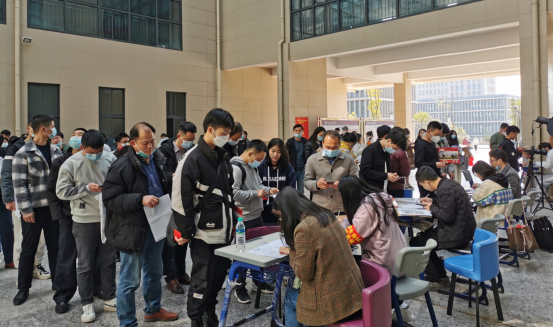 在校门口,各系部负责人和志愿者们一起,对报到的学生进行身份查验、验码等,耐心解答学生的疑问。报到现场,一群戴着红袖章的志愿者在校园内穿梭,维持秩序,热心引导着前来报到的扩招生们。扩招生们佩戴着口罩,在工作人员的指引下,有条不紊地完成了查验48小时内核酸检测阴性证明、健康码核验、体温检测等流程。