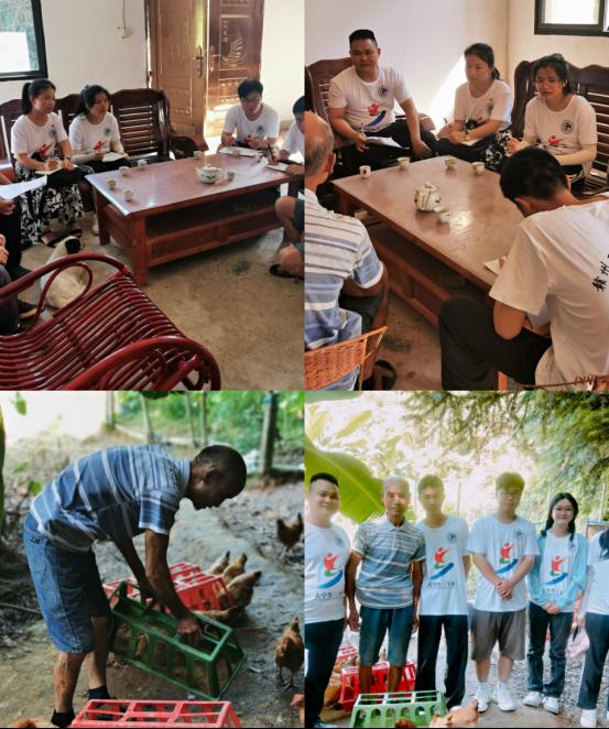 7月12日下午,志愿者团队还去了优秀养殖户吴私精老伯的家中调研。吴老伯对志愿者提出的实际养殖方面的各种问题都进行了耐心解答,并且给志愿者团队简要讲述了他的饲料调配、经营计划、兽药使用等一系列养殖经营技巧。热情的吴老伯还邀请志愿者团队参观了他的立体生态养殖基地与果林菜园,为志愿者团队逐一介绍了他们的品种类型与养殖价值,让志愿者们学习到了很多实用的养殖技巧。