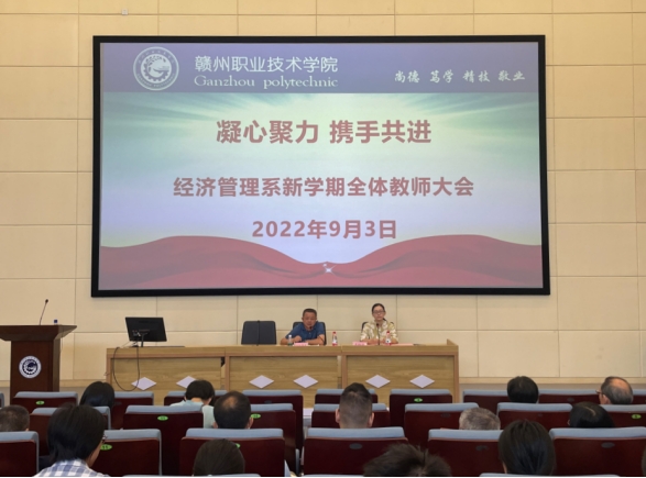 9月3日上午,经济管理系召开新学期全体教师大会,学院副院长欧阳荣华出席会议,会议由系部负责人卢晓娟主持,系部全体教师参加会议。