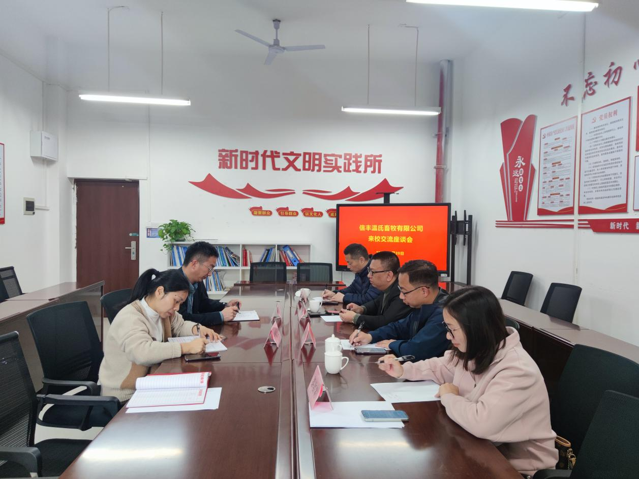 会上,许常青经理介绍了信丰温氏畜牧有限公司基本情况及人才需求,表达了希望能与我们达成深度合作的强烈愿望。吴辉生详细介绍了学院畜牧兽医相关专业办学概况及校企合作成功案例,希望双方能够达成最契合的合作模式。许常青经理等对我院的人才培养质量表示充分肯定,双方就校企合作模式、学生成长路径、就业晋升渠道、人才如何更好地服务地方产业经济、助力乡村振兴等方面进行了深度交谈。