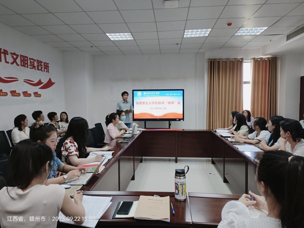 9月22日下午,马克思主义学院在行知楼四楼会议室召开政治理论学习会,随后进行了新入职教师“晒课”活动,并开展了集体备课。会议由马克思主义学院院长宋华主持,马克思主义学院全体教师参加了会议。
