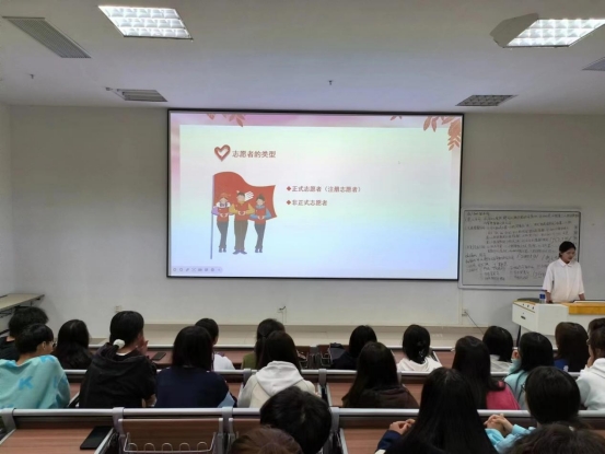 活动伊始,协会副会长曾微同学通过PPT介绍的方式向新晋志愿者们介绍了志愿服务理念和知识、志愿服务的起源发展、志愿者应有的素质以及志愿服务过程必须注意的一些技巧和方法等内容。