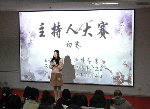 为活跃校园文化氛围,提高艺术素养,浓郁校园文化氛围,全面展现大学生热爱生活和全面发展的进取精神,动物科学系于11月14日晚在阳明楼110室举行了主持人选拔赛。