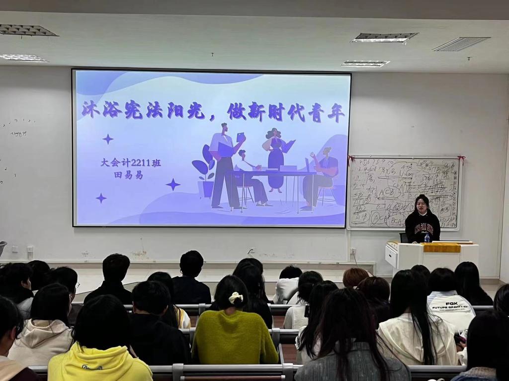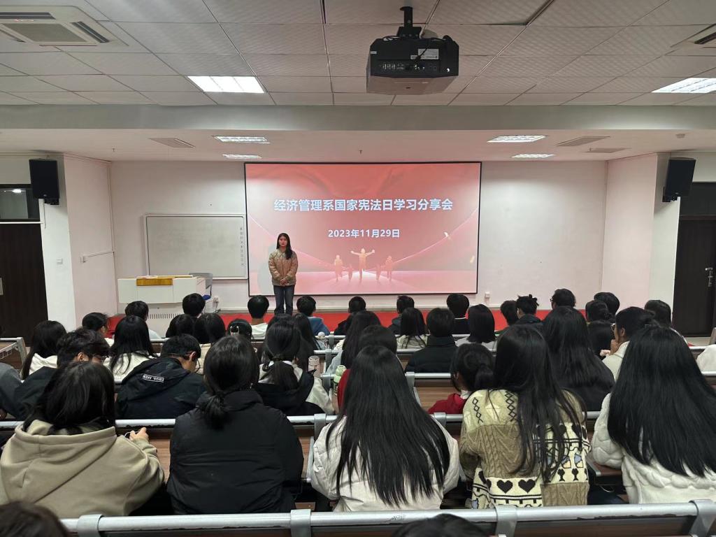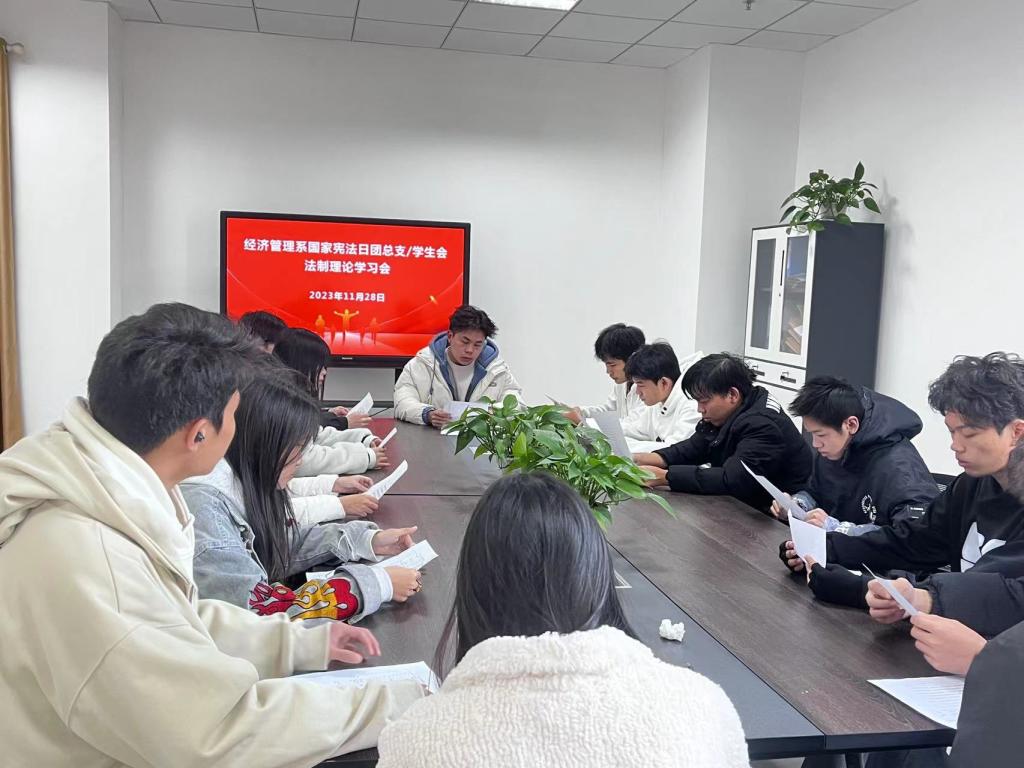 11月29日,经济管理系团总支、学生会开展了经济管理系国家宪法日团总支、学生会法制理论学习会,并组织各班班干部代表开展了国家宪法日学习分享会。在学习分享过程中,学生代表领读宪法部分条款,现场的同学们进行跟读。学生以饱满的精神诵读宪法,并进行了主题分享交流,大数据与会计2211班田易易、跨境电商2311班班刘彤、电商2312班张彩艳,三位同学进行主题交流发言。通过该活动,让宪法在同学们心中生根发芽,引导大家自觉遵守宪法,成长为具有社会主义法治精神的合格社会主义事业建设者和接班人。
