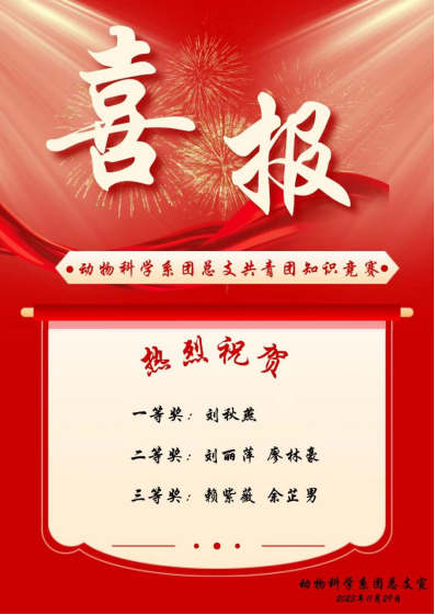 为引导广大共青团员主动了解团史、团情,切实增强政治意识、组织意识和模范意识,在党的伟大事业中充分发挥共青团生力军作用,11月28日晚,动物科学系在应星楼415室开展了共青团知识竞赛活动。