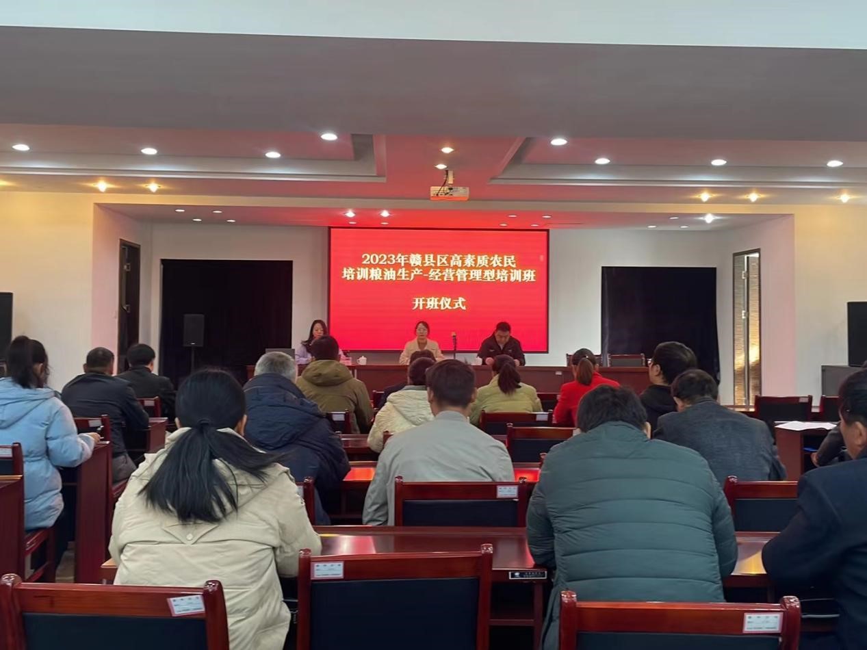 11月16日,赣县区2023年高素质农民粮油生产-经营管理型培训班在学院培训中心举行开班仪式。出席仪式的主要领导有赣县区农业农村局科教生态股负责人黄庆婷,雷竞技电竞平台官网(赣州农业学校、赣州技师学院)继续教育与培训部工作人员。