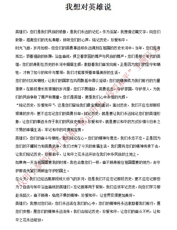 主题征文的作品中,同学们用文字记录下了他们对历史的理解和对英雄的敬仰。通过文字表达了对沉重历史的悲痛和对和平的渴望。同时,也表达了对未来的期望和信心。