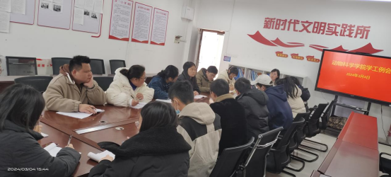 3月4日下午,动物科学学院在应星楼四楼415室召开第二周学工例会。会议由动物科学学院党支部副书记刘燕娜主持召开,动物科学学院全体专、兼职辅导员班主任、学工干事、组织委员参加会议。