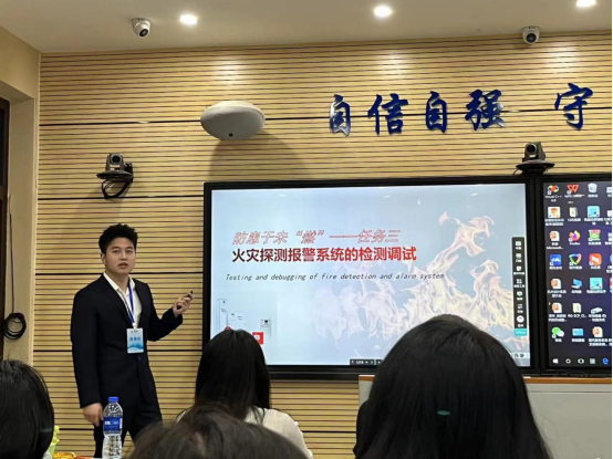 参赛团队成员朱文彬老师在决赛现场进行了无学生教学演示,他由衷地感谢学校给了他这次参赛机会,他说:“作为一个职场新人,非常有幸地参加了这次比赛,几个月下来收获颇丰。首先,我意识到教学不仅仅是传授知识,更重要的是激发学生的兴趣和积极性。在准备大赛的过程中,我尝试运用各种教学方法和手段,如案例分析、小组讨论、互动问答等,以吸引学生的注意力并引导他们主动思考和探索。通过这些尝试,我发现学生的学习兴趣得到了明显的提升,他们更加积极地参与到课堂中来,教学效果也显著提高;其次,我深刻体会到了团队合作的重要性。在备赛过程中,我与同事们一起讨论、交流、互相学习,共同制定了教学方案并不断完善。我们相互支持、鼓励,共同面对挑战和困难。这种团队合作的精神不仅增强了我们之间的凝聚力,也让我们在备赛过程中不断进步。通过这次大赛,我极大提升了自己的教学能力和水平,这些经历让我更加自信、坚定地走向未来的教育之路。”