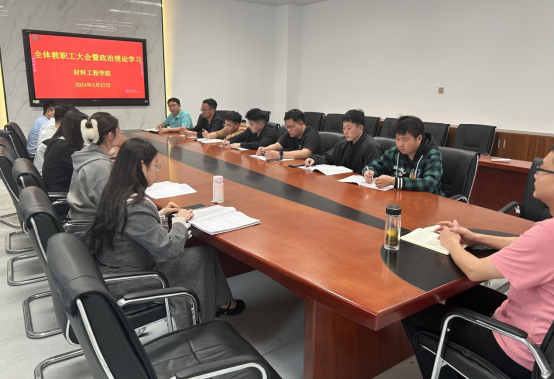 3月27日下午,材料工程学院在公共实训基地召开全体教职工大会暨政治理论学习会议,会议由院长魏新主持,党支部书记刘书友、全体教职工参会。