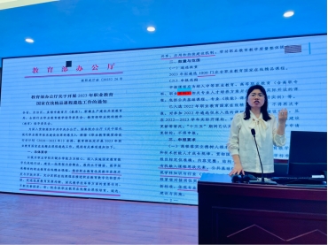 随后,专家详细讲解了在线精品课程的建设流程和关键要素。她强调了课程设计的重要性,指出要紧密结合行业需求和学生特点,注重课程内容的实用性和创新性。同时,她还分享了新形态课程建设的成功案例和实践经验,为教师们提供了宝贵的借鉴和启示。