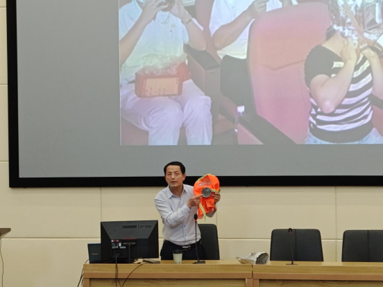 何家好老师结合近年来发生的典型火灾案例,通过真实的视频资料和详尽的数据分析,揭示了火灾事故的残酷性和破坏性。他指出,火灾事故往往源于对消防安全细节的忽视和对初期火情的处理不当,强调“预防为主,防消结合”的重要性,同时指出预防火灾事故的关键在于提高人们的消防安全意识,需不断加强消防安全管理,及时消除火灾隐患。最后,何老师详细讲解了火灾的预防措施、灭火器的使用方法以及火场逃生自救等消防安全知识。讲解过程通俗易懂、深入浅出,让在场的每位教师都受益良多。