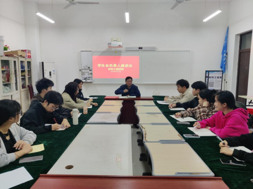 为激发学生会各部门负责人的工作激情,强化理想信念和工作意识,4月7日,材料工程学院召开“挺膺担当,勇为善为”的学生座谈会,座谈会由党支部书记刘书友主持。