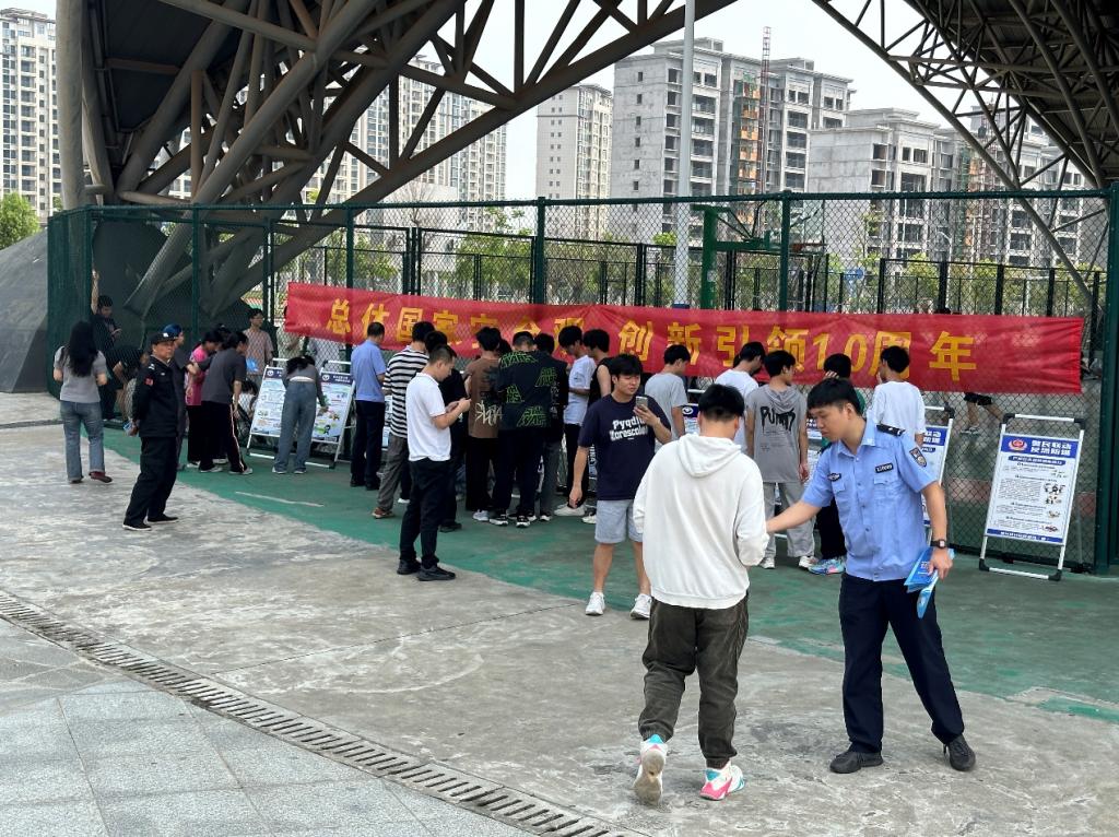 学校联合赣州市公安局经开区分局、辖区科技城派出所民警,在风雨球场通过悬挂横幅、海报、现场宣讲、发放宣传资料等形式,向来往学生宣传国家安全相关知识,为学生就国家安全方面的法律法规进行答疑解惑,形成警校联合的宣传态势,切实提高了学院的国家安全意识。