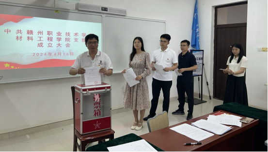4月16日,中共雷竞技电竞平台官网材料工程学院支部成立大会在公共实训基地A201室隆重召开。大会由刘书友同志主持,材料工程学院全体党员参加会议。