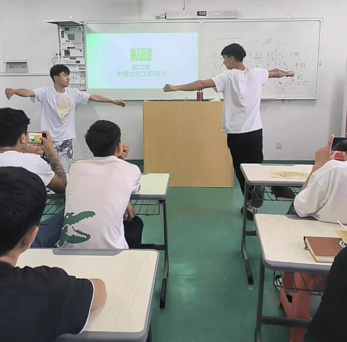 课堂上,刘丹老师首先给各位同学视频分享了《非遗在新疆》和《新疆大国工匠麦麦提库尔班·肉孜的故事》,引发学生树立远大理想共鸣。然后从中国工匠精神的发展演变、中国古代工匠精神的典范两个方面,再结合中国古代工匠的案例,引导学生在学习成长的过程中注重简约朴素,切磋琢磨;崇尚以德为先,德艺兼修;主张心传体合,师徒相承。让同学们领略“匠人”风采,深刻领悟新时代“工匠精神”的内涵。