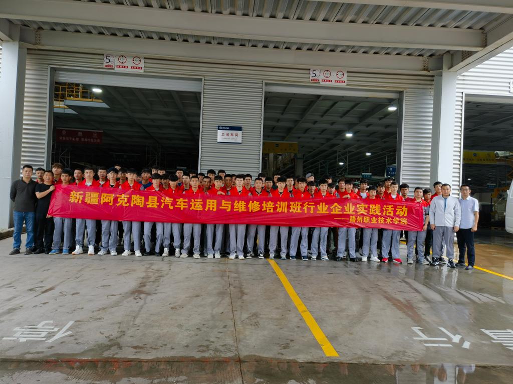 4月20日上午,汽车工程学院组织新疆阿克陶县职业院校学生汽车运用与维修培训班60名学员、2名带队教师来到合作企业山东凯马汽车制造有限公司赣州分公司开展参观学习交流活动。