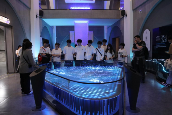 在九曲河路社区工作人员的带领下,“大骨班”学员们首先来到赣州独有的“福寿沟”博物馆。福寿沟位于江西省赣州市章贡区老城区地下,是赣州古城地下的大规模古代砖石排水管沟系统。作为赣州古代城市排水系统的杰出代表,承载着丰富的历史文化和科技智慧。在这里,“大骨班”学员们深入了解了福寿沟的历史背景、设计理念以及其在古代城市排水中的重要作用。通过参观复原模型、历史文献和实物资料,大家更加深入地认识到福寿沟在中国古代城市建设中的重要地位和影响。
