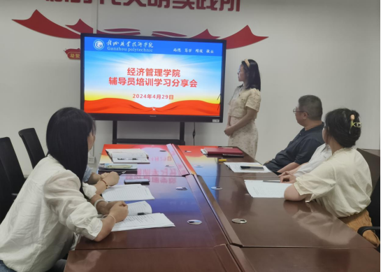 4月29日,经济管理学院组织召开辅导员培训交流分享会,辅导员陈媛作培训学习分享,经济管理学院学工管理人员及全体辅导员参加了会议。