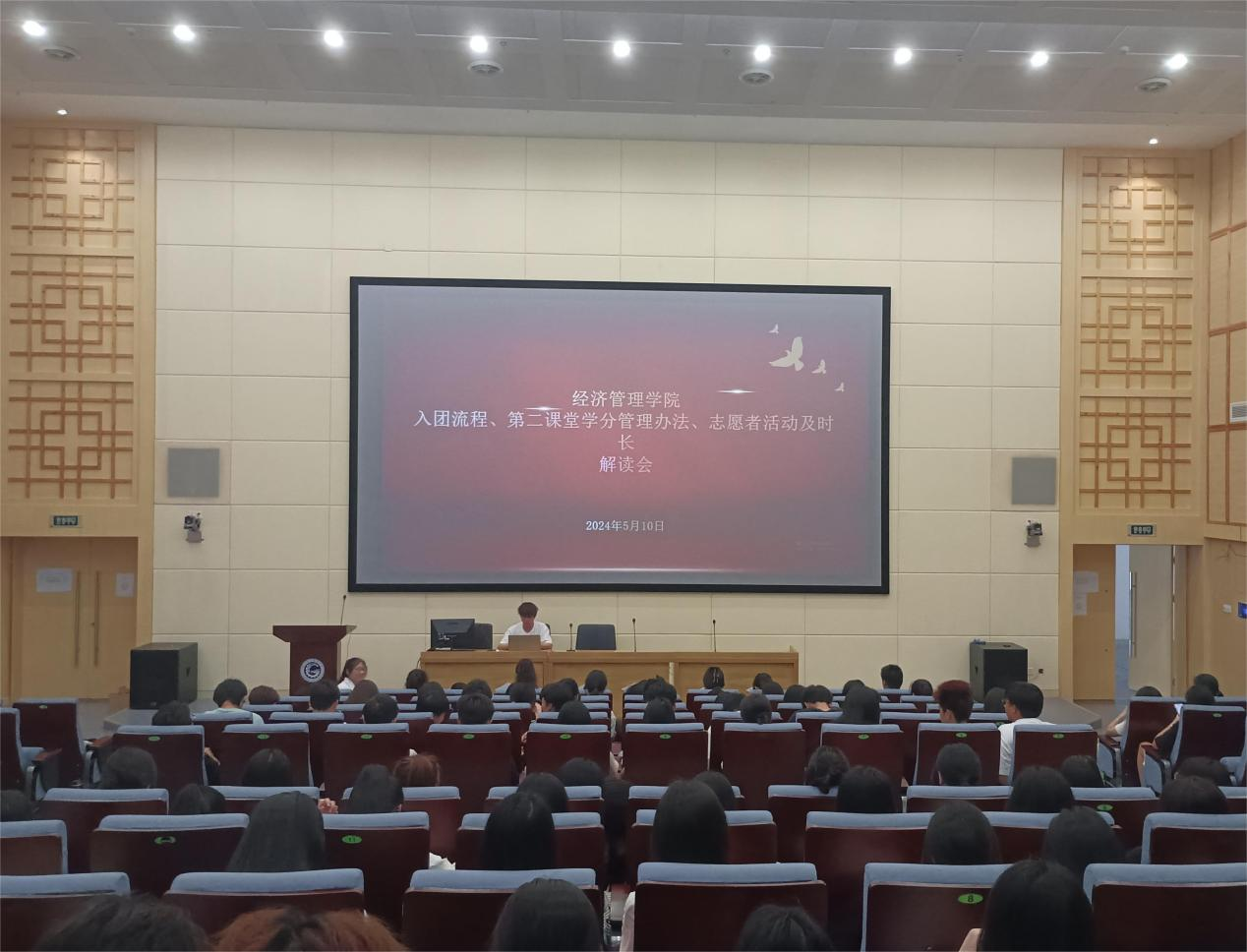 为加强经济管理学院团组织建设、让同学们更好地了解入团流程、第二课堂学分的重要性及志愿者活动的意义等,5月10日,经济管理学院团总支在图书馆报告厅召开了一场解读会。