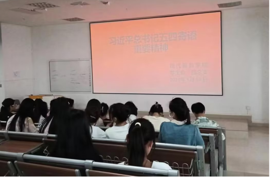 5月10日下午,现代服务学院学生会与现代服务学院团总支全体学生在阳明楼112阶梯教室召开学习会。集中学习了《习近平总书记五四寄语重要精神》