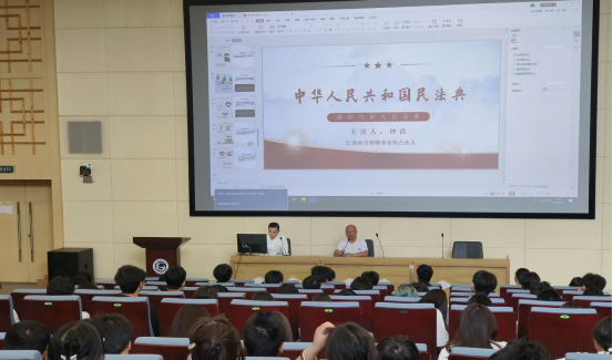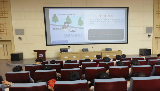 钟浩介绍了民法典的构成,以及解读了民法典的部分内容,通过真实的案例展示了一个人的一生中,从出生到死亡,每个阶段,生活中方方面面会涉及的民法典,让师生真正从实际生活中去了解民法典的作用,教会我们如何用民法典的规定来维护自己的权利。