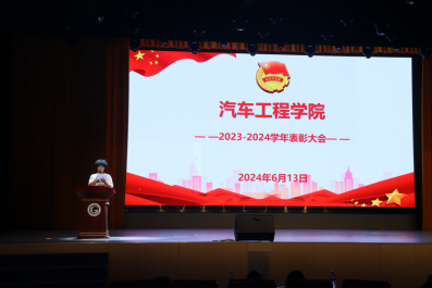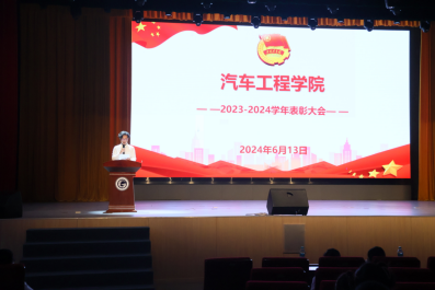 为落实立德树人根本任务,强化“三全育人”教育举措,表彰先进、树立典范,激励广大学生以优秀学生为榜样,奋发作为,争创佳绩。近日,汽车工程学院2023-2024学年表彰大会在行知楼学术报告厅隆重举行。学院院长孙恺,副院长明建平、副书记张诗咏,部分老师以及300余名学生代表参加表彰大会。
