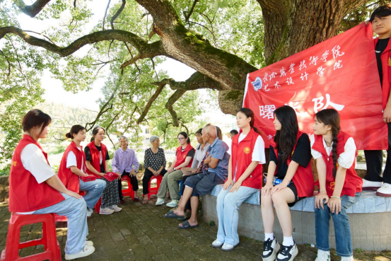 2024年7月5日,“三下乡”社会实践活动的第一天,夏季的蝉鸣,在村口的古树上奏响。阳光洒在广袤的田野上,空气中沁出了稻田的清香。艺术设计学院“曙光队”,带着饱满的精神状态,深入乡里乡亲,田间地头。