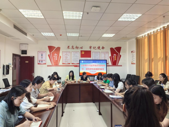 为深入学习习近平生态文明思想,认真落实党中央关于生态文明建设的重大决策部署,贯彻党和国家的方针政策,马克思主义学院党支部于7月7日组织全体教师党员开展了主题为“深学笃行习近平生态文明思想,谱写学校发展新篇章”的学习会。会议分两个阶段:集中学习阶段和交流讨论阶段。