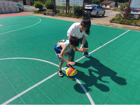 同时志愿者们还开展了篮球活动,旨在增强小朋友们的身体素质。志愿者们耐心指导纠正小朋友们的动作,并针对球感,步伐,运球,投篮实战等内容进行训练。随后与小朋友们共同开展篮球小游戏,在篮球拍动的一上一下中,整个场地充满乐趣,小朋友们享受到休闲运动的乐趣。