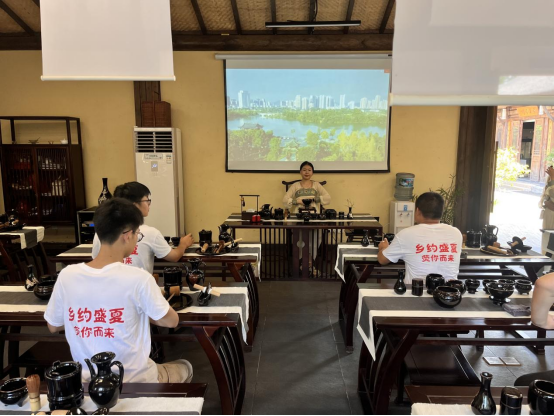 7月14日,在吉州窑古茶瓷博物馆讲解员的带领下,志愿者们欣赏到了吉州窑古茶器、花器、香器等的陈列展示,了解了吉州窑古茶瓷实物藏品和点茶的工艺流程和历史背景。