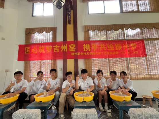 志愿者们先参观了陶瓷研究所,了解到了关于吉州窑的历史和陶瓷制作工艺,随后志愿者们跟随陶艺师傅开始体验陶瓷制作。