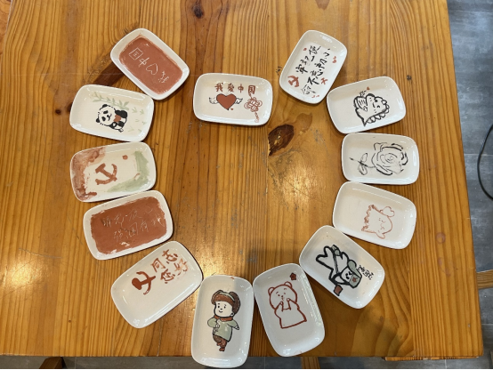 拉坯环节结束后,来到瓷上釉阶段,大家充分发挥创意,将现代元素与传统吉州窑相结合,赋予作品新的生命力。志愿者们或低头沉思,或轻轻地在陶器上勾勒线条。草图逐渐成形,有的简约而富有意境,有的复杂而精致入微,每一笔都承载着创作者的情感与故事。