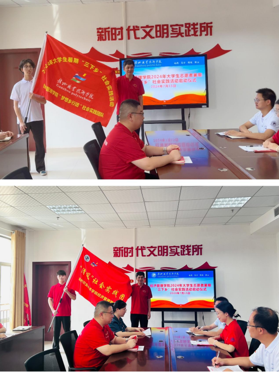 为深入学习贯彻习近平新时代中国特色社会主义思想,全面贯彻落实党的二十大精神,引导和帮助广大青年学生在与实践相结合的“大思政课”中“受教育、长才干、作贡献”,实现"走在前,勇争先、善作为"的目标要求。7月15日下午,经济管理学院大学生暑期“三下乡”社会实践活动启动仪式在阳明楼510会议室顺利举办。仪式由学院党支部副书记陈曦同志主持,学院负责人肖首荣同志、学院党支部宣传委员李闽老师及两支队伍16名队员学生、5名指导老师参加本次启动仪式。