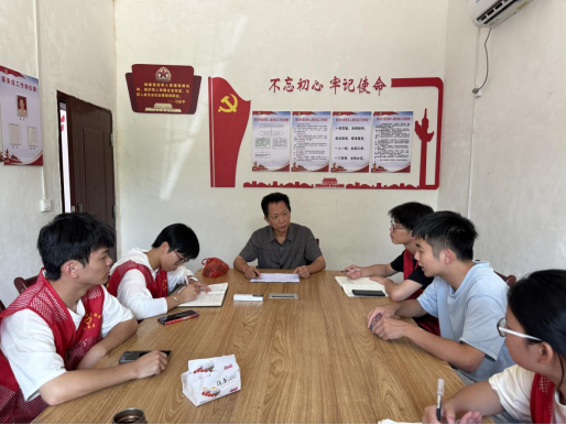 穿过蜿蜒的山路,依山而建、伴水而居的感坑村映入眼帘。上午,实践队员们来到感坑村村委会与感坑村村支书肖隆德书记进行了座谈交流。肖德隆书记从感坑村的地理位置、人口概况、产业结构以及生态环保等四个方面为实践队员们做了介绍。感坑村近年来积极推进人居环境整治,加强基础设施建设,提升公共服务水平,如今的感坑村山更绿、天更蓝、空气更清新。为巩固拓展脱贫攻坚成果,村里积极引入大棚设施蔬菜基地巩固提升、生态鱼塘养殖、农耕基地建设等项目,受益户数可达到132户。实践队员们切实体会到了乡村振兴战略带给给村民们带来的积极变化。