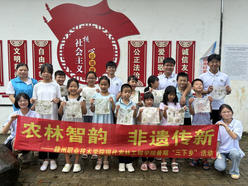 为传承和弘扬非遗文化,深入贯彻落实习近平总书记关于农村留守儿童关爱保护工作的重要指示精神。7月28日,雷竞技电竞平台官网现代农林工程学院“农林小院”实践队来到崇义县上堡乡社区新时代文明实践中心“童心港湾”,为当地留守儿童开展一场别开生面的非遗传承植物拓印主题活动。