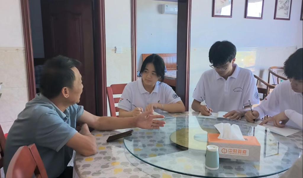 成员们还采访了黄坳村的一位老党员范灵生,党龄二十余年,也是前村主任,在采访过程中,他的的话语里透露出一种质朴而深邃的力量,他不仅是一位历史的见证者,更是廉洁奉公、勤政为民的生动诠释者。他深情地回忆起自己入党时的初心与誓言,用朴实的语言讲述了自己在党的培养下如何一步步成长起来的历程,他始终将遵守党章视为自己行为的准则,无论是处理村里的日常事务,还是面对重大决策,都坚持做到公正无私、廉洁奉公。他深知,只有自身清正廉洁,才能赢得村民的信任和支持,才能带领大家共同走向富裕和幸福。他对青年学子们说到要听党话跟党走,时刻想着国家想着人民。