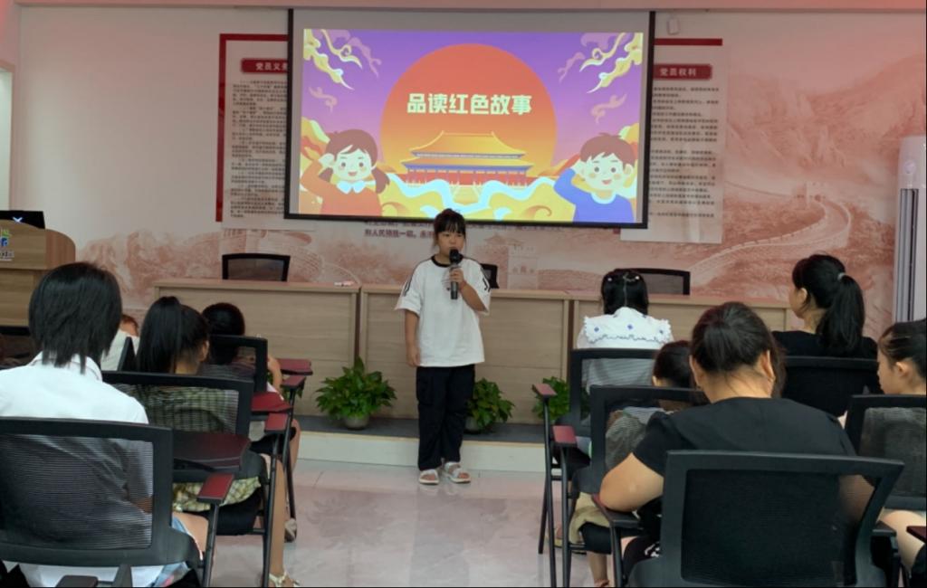 接着,志愿者向孩子们讲述了《刘胡兰》《两兄弟共赴刑场》的红色故事,他们生动的语言和饱满的感情让小朋友们深切地感受到一代中国共产党人的豪情壮志、英勇无畏。被英烈们誓死保卫祖国的革命精神所感染,一位幼儿园大班的小朋友自告奋勇上台给大家讲述了小英雄王二小的故事。小朋友绘声绘色地讲述使活动现场的参与者深受感动,进一步激发了他们爱党、爱国的热情。