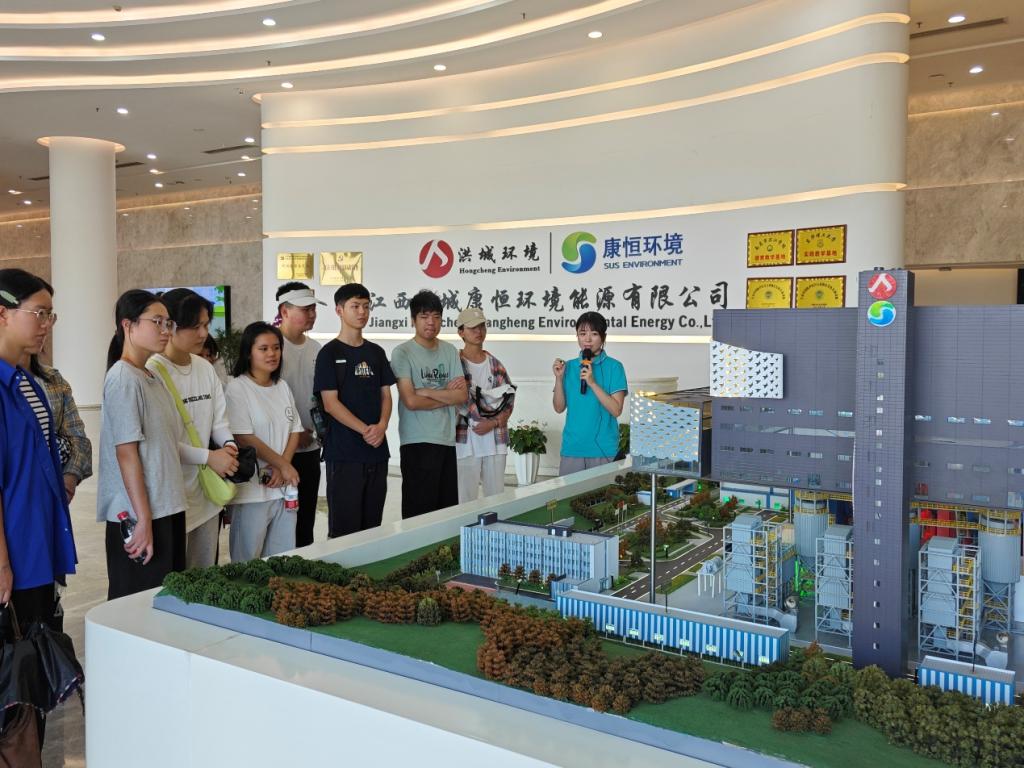 随后,志愿者们走进了南昌市生态文明教育示范基地。据基地讲解员介绍,基地作为国家环境污染第三方治理试点单位,南昌固废处理循环经济产业园承担了南昌市70%的固废垃圾处理,通过实施减量化、再循环、资源化的循环经济模式来达到物质闭路循环、能量多级利用。同时,为广泛深入宣传习近平生态文明思想,产业园建设了宣传科普场馆,涉及生活垃圾焚烧发电、餐厨垃圾处理和渗滤液及渗滤液浓缩液处理等项目相关的讲解科普。