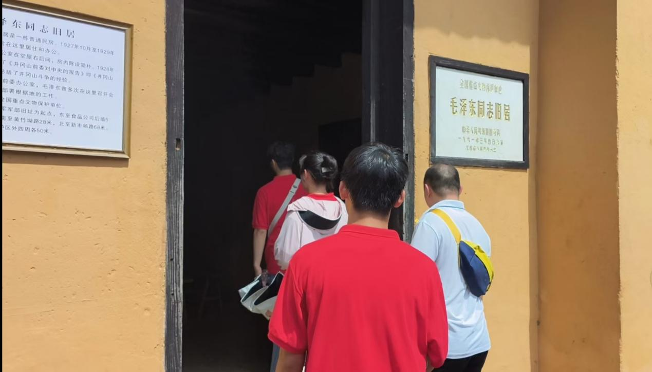 “清风”社会实践团的成员们步入历史的深处,走到毛泽东旧居感受到伟人当年在艰苦环境中不懈奋斗的壮志豪情与家国情怀。旧居内的一砖一瓦、一桌一椅,都无声地讲述着那段波澜壮阔的革命岁月,激励着每一位青年学子不忘初心、牢记使命。随后,当成员们站在井冈山革命先烈纪念塔下,那片被阳光温柔照耀却又不失庄严的土地上,空气似乎都凝固了。纪念塔巍峨耸立,如同革命先烈的崇高精神,永远矗立在人们心中。在静默的哀悼中,每一声轻轻的呼吸都充满了对先烈的敬仰与怀念。他们深知,正是这些无名英雄的无私奉献与英勇牺牲,才换来了今天的和平与繁荣。