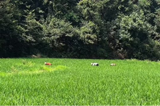 途经杨西村时,看到路边田野3个农民在田里精耕细作。