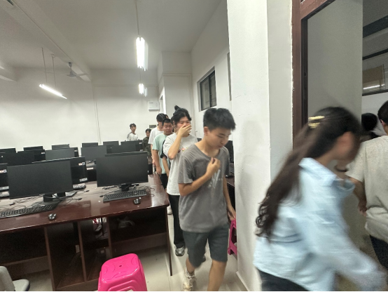 活动伊始,随着一阵急促而有力的警报声划破长空,消防演练的序幕正式拉开。面对模拟的紧急情况,学院师生迅速而有序地按照事先制定的应急预案行动起来。大家保持高度冷静,用湿布捂住口鼻以防吸入有害气体,同时弯腰低姿以减少烟雾吸入,沿着既定的疏散路线迅速而有序地撤离至安全区域。整个疏散过程紧张而有序,充分展现了师生们良好的应急反应能力和团队协作精神。