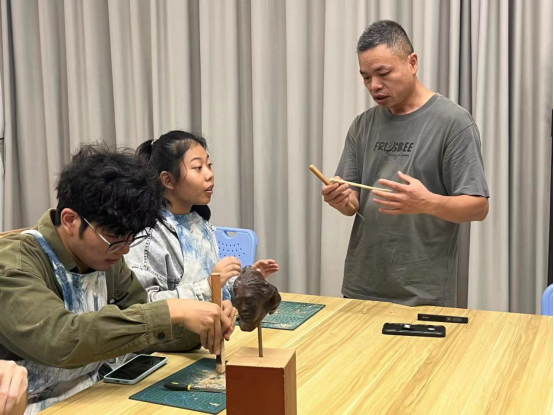 活动现场,付老师详细讲解了客家根雕的历史背景及其独特的艺术魅力,并亲自示范如何从一块看似平凡无奇的木头中提炼出精致的发簪。学生们围坐在工作台前,聚精会神地聆听老师的讲解,随后在老师的指导下开始动手实践。从选材到雕刻,再到打磨抛光,每一个步骤都充满了学问和技术含量。此次活动不仅加深了学生们对非物质文化遗产的认识,也激发了他们对于传统手工艺的兴趣。据付老师介绍,未来还将继续开展类似的教学活动,希望通过这样的方式能够更好地保护和传承客家根雕这一珍贵的文化遗产。也能让越来越多的学生从中领略非遗项目的魅力!