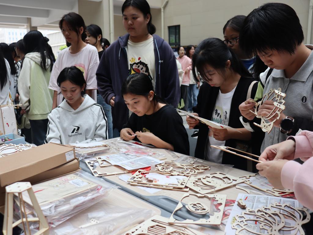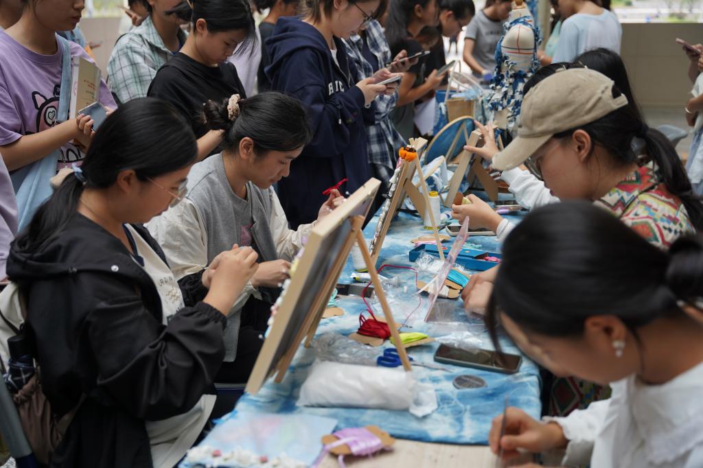活动展出了非遗灯彩制作技艺、手工扎染技艺、大漆水拓扇、盘扣、凸版印刷等江西传统技艺及赣州城市数字风情展。在活动现场,人头攒动,每个展台都吸引了众多师生驻足,同学们争相体验,共同感受江西传统文化的独特魅力和深厚底蕴。